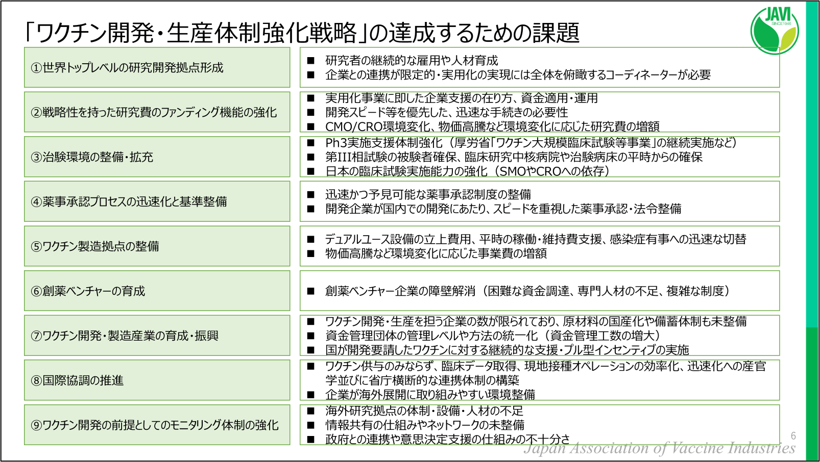 ワクチン開発・生産体制強化戦略に対するこれまでの取り組みと課題