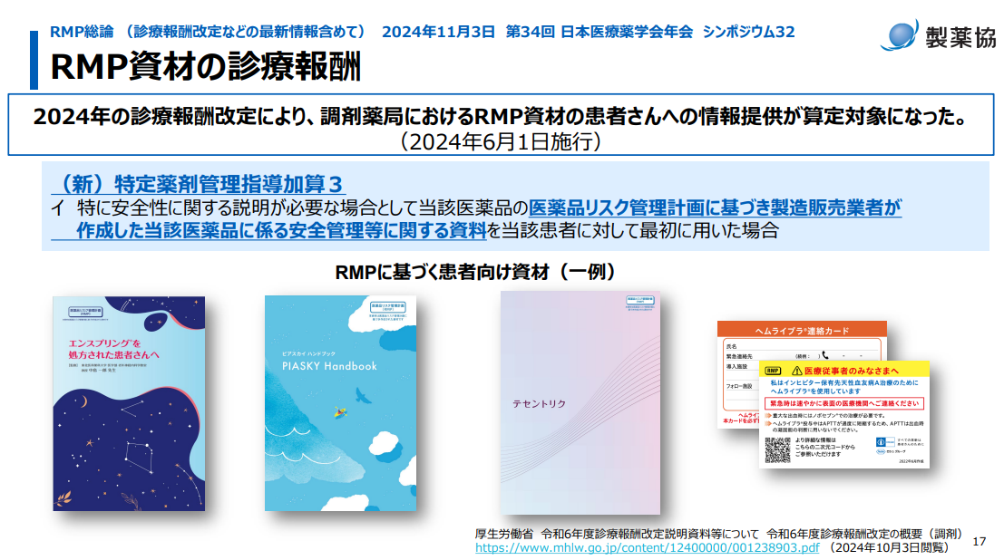 医薬品評価委員会 RMP総論 (診療報酬改定などの最新情報含めて) 2024年11月3日 医療薬学会講演スライド