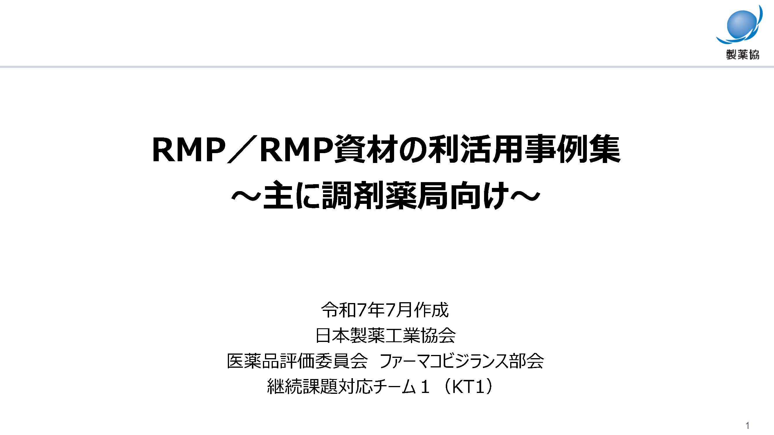 医薬品評価委員会 【製薬協Webサイト公開】PV:KT1 RMP/RMP資材の利活用事例集~主に調剤薬局向け~