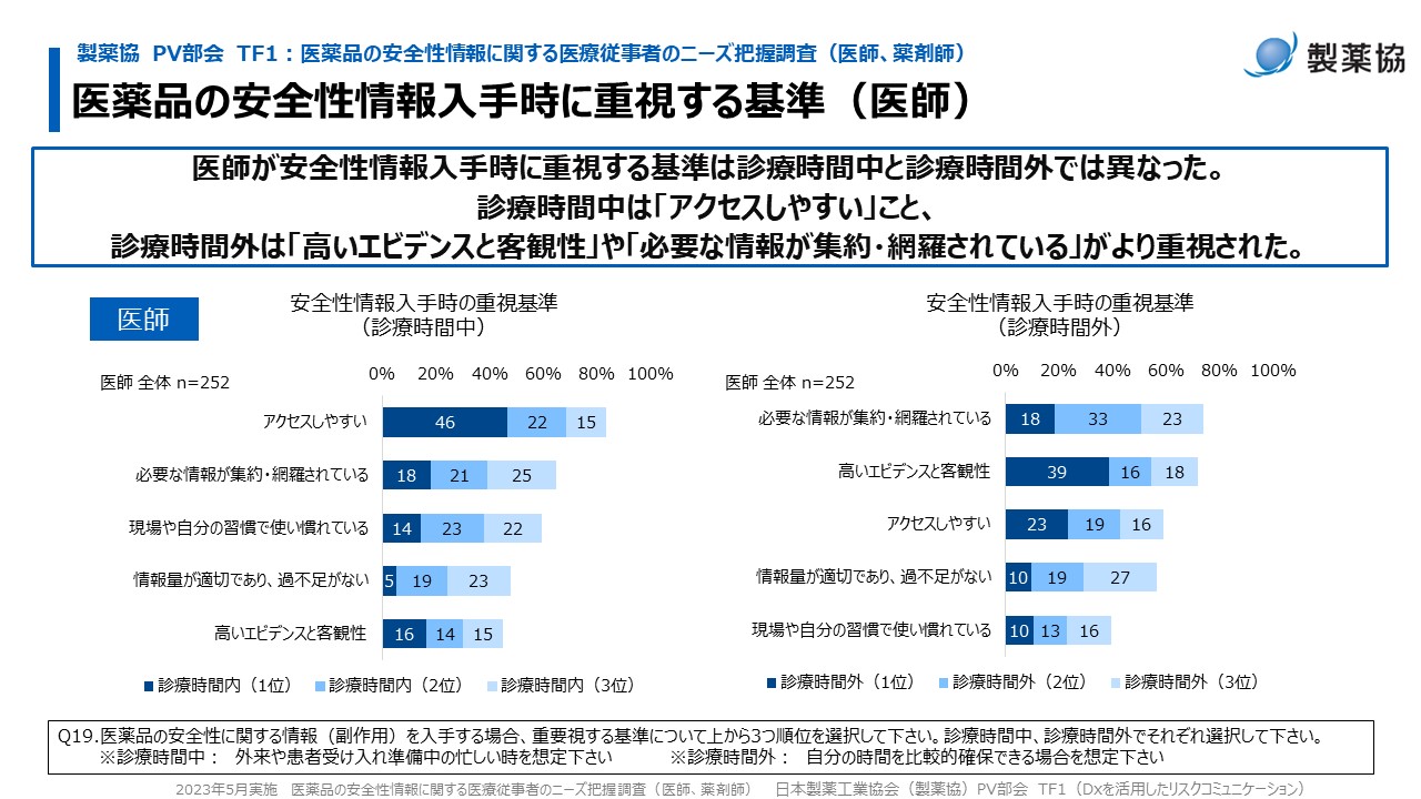 医薬品評価委員会 医薬品の安全性情報に関する医療従事者のニーズ把握調査(医師、薬剤師)-速報- 2023年5月実施