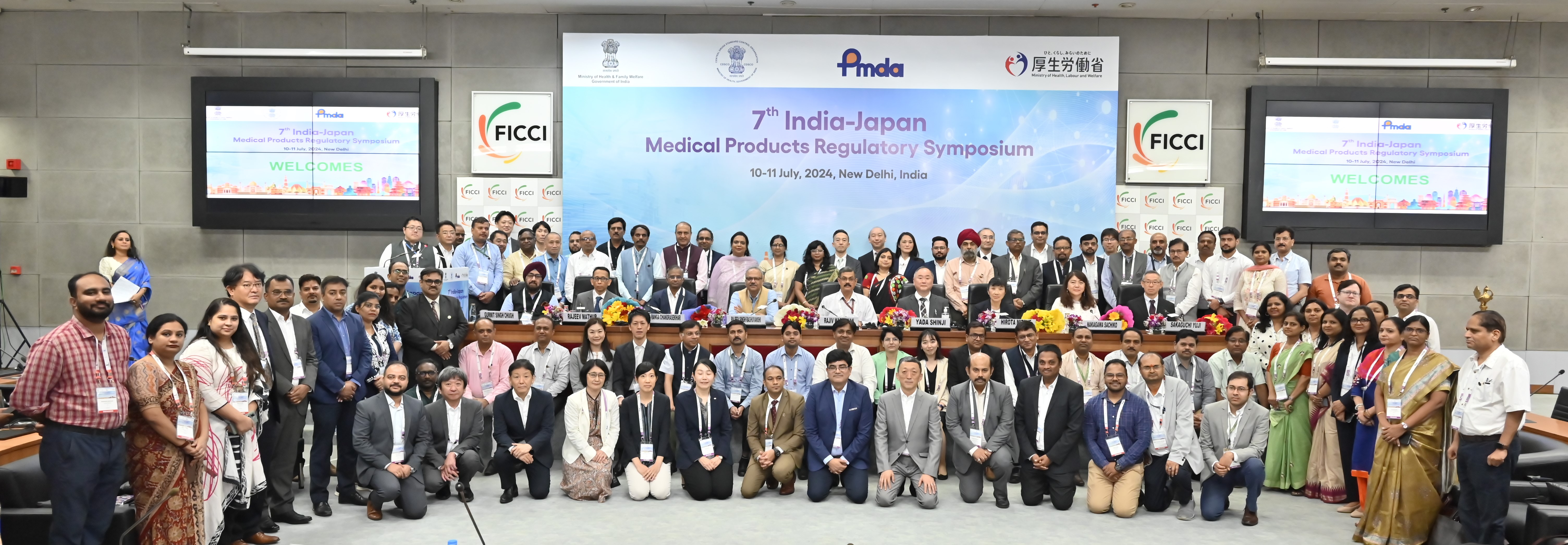 2024年7月10日、インドのニューデリーにて、第7回 日インド医療製品規制に関するシンポジウムが開催されました。このシンポジウムは、厚生労働省(MHLW)・独立行政法人医薬品医療機器総合機構(PMDA)およびインド保健家族福祉省・中央医薬品基準管理機構(CDSCO)によって開催され、製薬協は日本製薬団体連合会、日本医療機器産業連合会、再生医療イノベーションフォーラムとともに後援団体として企画・運営に協力しました。本シンポジウムは、医薬品、医療機器、再生医療等製品の規制に関する日インド両国の最新動向、産業界の課題や提案を共有し、国際的な規制調和や協力等を議論することで、両国の薬事規制のレベル向上や、産業界による規制対応の円滑化をめざすものです。今回は、両国の薬事規制当局からそれぞれ最新動向が共有され、医薬品セッションではPMDAから原薬の品質管理、JPMAよりe-Labeling、CDSCOからは最近のGMP改正に関するアジェンダが組まれ、産業界からの課題に関する質問を含め活発な議論が展開されました。ここでは主に医薬品に関する内容について報告します。