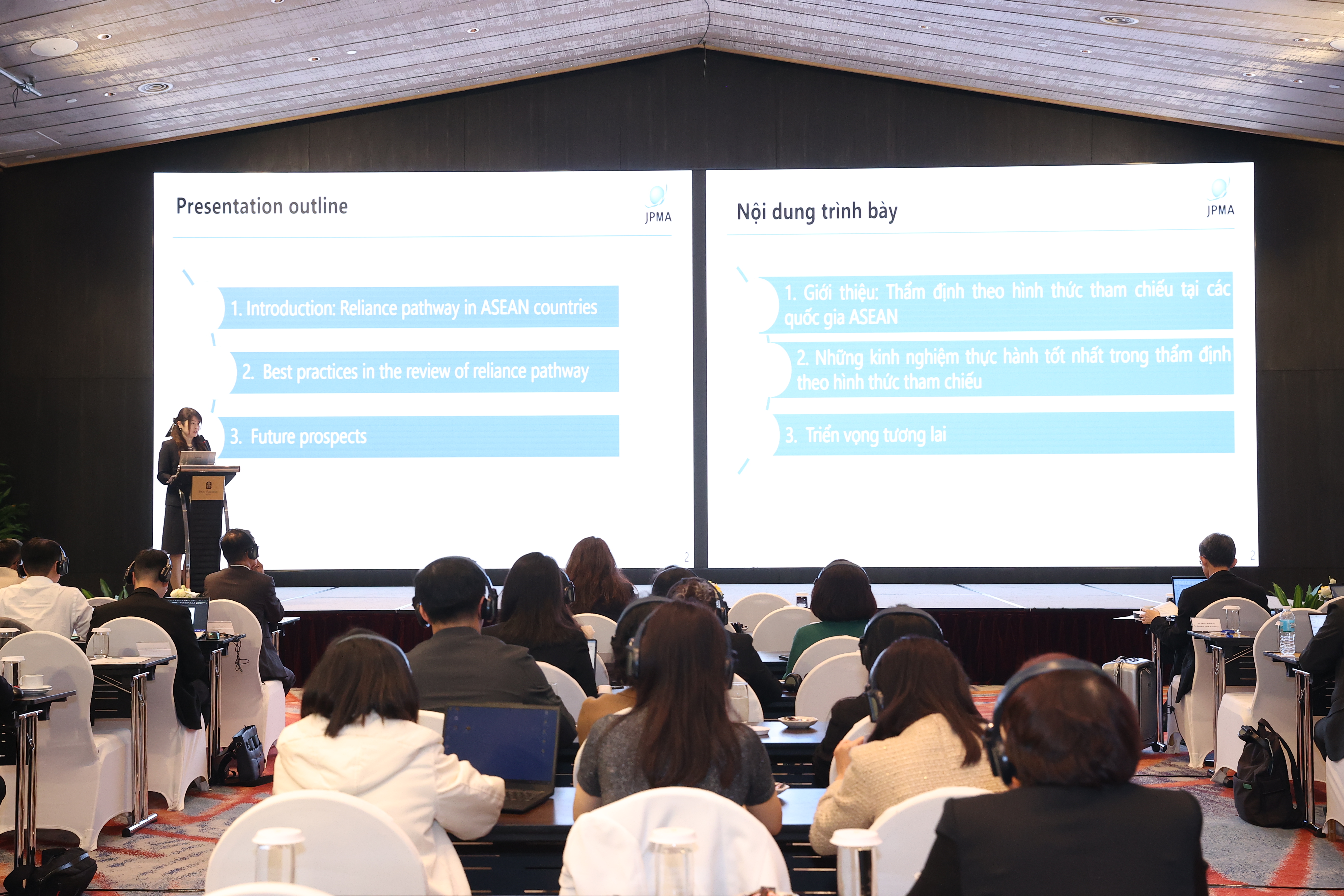 日本の業界を代表して製薬協国際委員会アジア部会の村林宏美委員が、ベトナムの研究開発型製薬団体を代表してPharma Group(PG)エグゼクティブ・ディレクターのトゥイ・グエン氏とともに、他国のリライアンス審査の経験からベストプラクティスを共有しました。製薬協は日本承認参照時のベストプラクティスとしてPMDAとの連携による審査報告書のカバーレターの添付を推奨しています。これにより規制当局間の直接的な情報交換が促進され、審査の効率化が期待されます。PGは円滑なリライアンス審査の実行を支援する産業界の協力案として、両当局と製薬協、PGの四者による実務者会合を提案し、DAVの賛同を得ました。