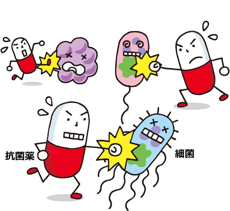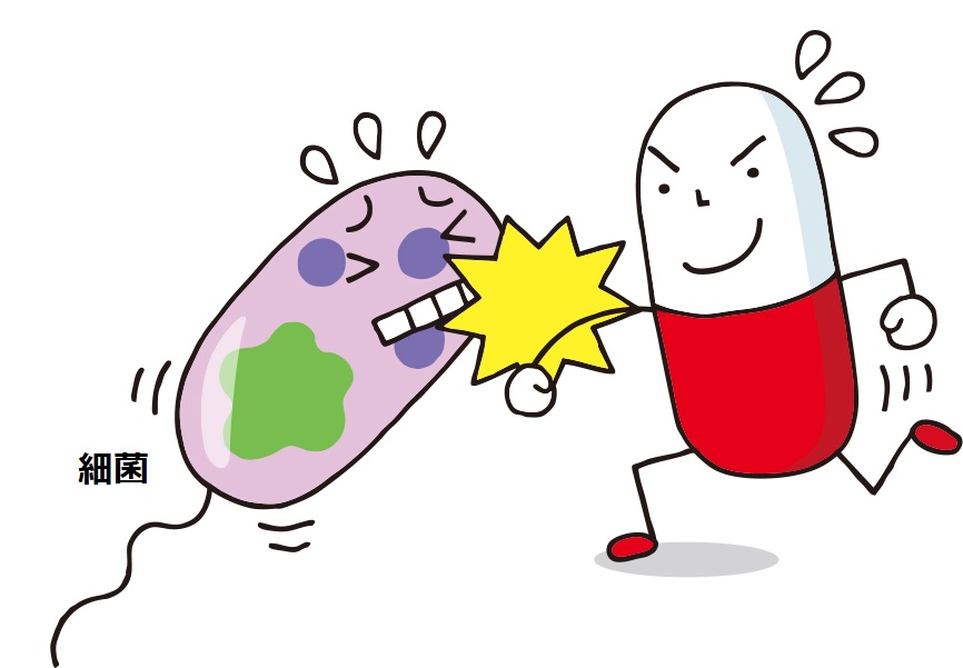 体に悪さをするのはウイルスや細菌などさまざまな種類があるが、抗菌薬(抗生物質)は細菌をやっつける治療薬(ちりょうやく)だ。