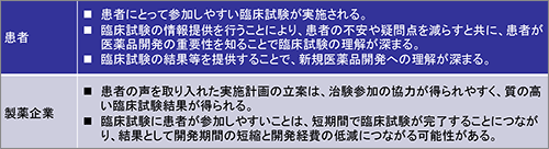 企業が患者さんと直接接触することがはばかられるという認識が根強くあるものの、今後はReal Life Experienceを取り込んでいくことが重要と考えられており、すでに海外では先行した事例がいくつか出てきています。最終的には双方にとってWin-Winになる関係が重要であり、早期の段階から患者さんの声を取り込んでいくことが重要と考えられています。