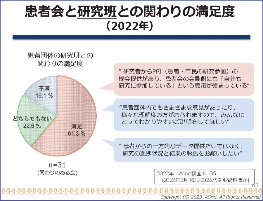 患者会は基盤が弱い場合も多く、サポートが必要ですが、この点についてはさらに社会的な議論が必要だと考えています。