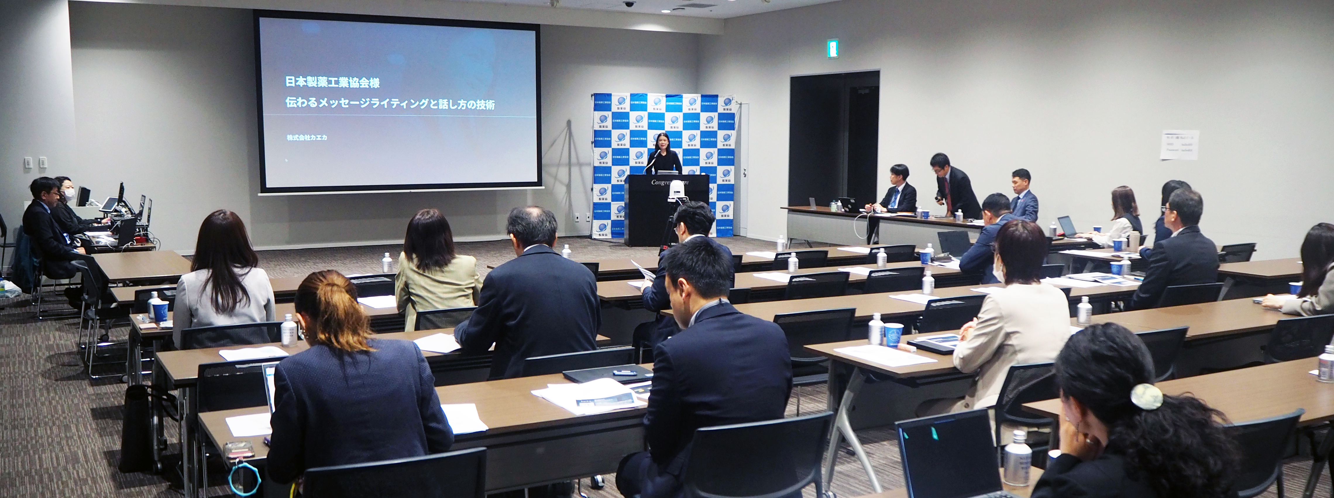 製薬協広報委員会は、2025年5月27日にコングレスクエア日本橋において「第43回 広報セミナー」を開催しました。広報セミナーでは、製薬産業を取り巻く環境や広報関連トピックスをテーマに情報共有を行っています。今回のテーマは「伝わるメッセージライティングと話し⽅の技術」と題して、株式会社カエカのスピーチトレーナー 長門萌氏に講演いただきました。