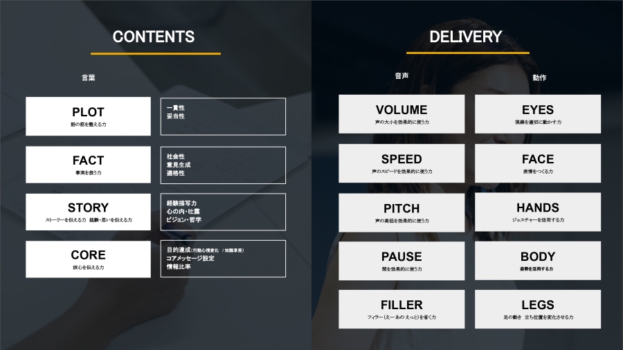 もちろん、努力の方向性はとても大事です。私たちはその方向性として、「話し方はコンテンツとデリバリーに分けて考える」ことをご提案しています。
