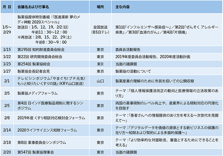 主な活動報告(2020年1月1日~2月29日)