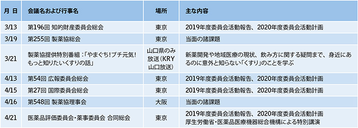 主な活動予定(2020年3月1日~4月30日)
