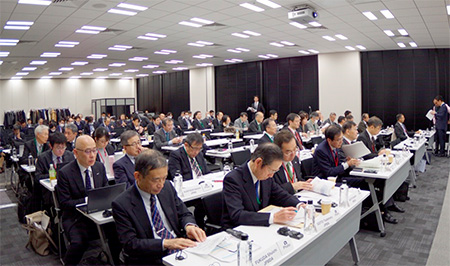 今回のシンポジウムはインド行政側から、中央医薬品基準管理機構(CDSCO)長官のV.G.Somani氏、グジャラート州規制当局のHemant G.Koshia氏、インド大使館の公使Mona K C Khandhar氏ら5名が参加しました。日本行政側からは、厚生労働省医薬・生活衛生局局長の樽見英樹氏、国際薬事規制室室長の安田尚之氏ら5名、独立行政法人医薬品医療機器総合機構(PMDA)理事長の藤原康弘氏、理事の林憲一氏、国際部部長の佐藤淳子氏、課長の城谷真理氏、主任専門員の富樫美賀氏を含む11名が参加しました。一方、産業界からは、インド医薬品輸出促進協議会(Pharmexcil)会長のSh. Udaya Bhaskar氏、製薬協の伍藤忠春理事長および国際委員会の赤名正臣委員長をはじめとする国際委員会幹部そのほか29名、現地企業からの参加者9名、一般社団法人医療機器産業連合会(JFMDA)専務理事の石井信芳氏を含む24名、一般社団法人再生医療イノベーションフォーラム(FIRM)副会長の鈴木邦彦氏ら6名、日本ジェネリック製薬協会の早川政兼氏ら3名、一般参加者47名を含む総勢140名が参加しました。