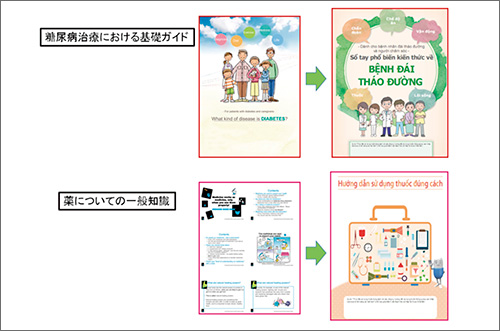 この医療技術等国際展開推進事業は、日本の医療や事業者の強みを活かしつつ相手国の医療水準の向上に貢献することで、日本と途上国の双方に好循環をもたらすことを目的とした研修事業です。当グループでは、まず、製薬企業や関連団体が作成している日本の患者さん向けの薬や疾患に関する説明資料をベトナムの患者さん向けに仕立て直し、次に、臨床薬剤師がそれらを活用して患者さんに服薬指導し、薬に対する理解度や服薬指導に対する満足度を患者さんに評価してもらうという2段階の活動計画を立てました。
