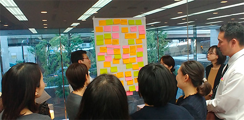 グループワーク(1)で出てきた課題等を踏まえながら、さきほどの2社の事例紹介から感じたことをグループ内で共有しました。そして各グループ内で3つほどの班に分けて、あるべきCP業務について議論を深め、下記のフレームワークを用いて、各班のCP業務に対する思いを書き出しました。