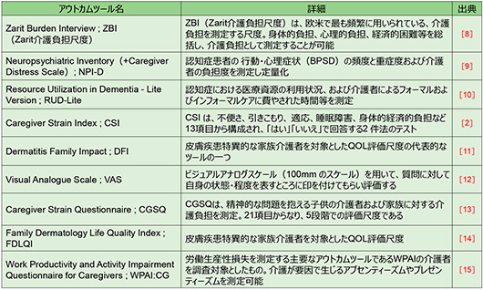 表2 介護者に関するアウトカム評価ツールのまとめ