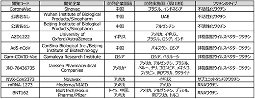 表2 第III相試験中の主要なCOVID-19ワクチン候補