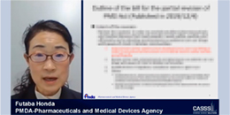 PMDA再生医療製品等審査部長の本田二葉氏からは、薬機法等の一部を改正する法律案の概要、先駆的医薬品の指定、条件付き迅速承認の運用、承認後変更管理実施計画書(Post-Approval Change Management Protocol、PACMP)運用、そしてCOVID-19治療薬に関する薬事審査のマネジメントについて紹介がありました。
