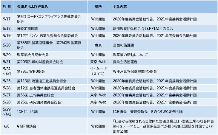 主な活動予定(2021年5月1日~6月30日)