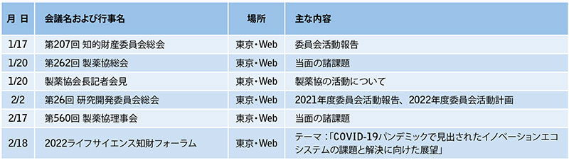 主な活動予定(2022年1月1日~2月28日)
