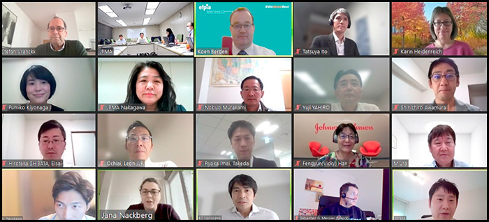製薬協からは、「製薬協 政策提言2021」、厚生労働省により今般発表された「医薬品産業ビジョン2021」のサマリーと、製薬協からのステートメントを紹介し、EFPIAからの質問に対して意見交換を行いました。
