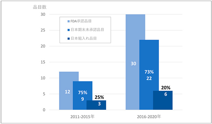 出所:FDA、独立行政法人医薬品医療機器総合機構(PMDA)の公開情報をもとに医薬産業政策研究所にて作成