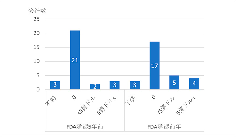 注:2011~2020年にFDA承認の抗悪性腫瘍剤を有する新興企業29社のデータを示す。