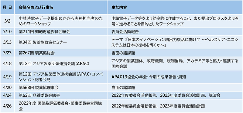 主な活動予定(2023年3月1日~4月30日)