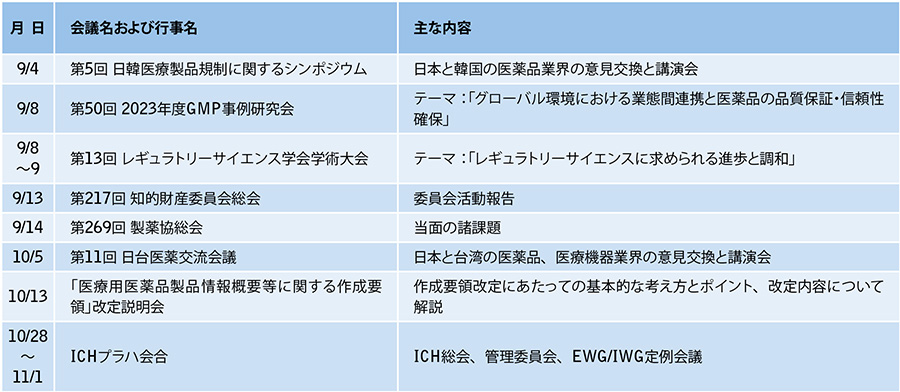 主な活動予定(2023年9月1日~10月31日)
