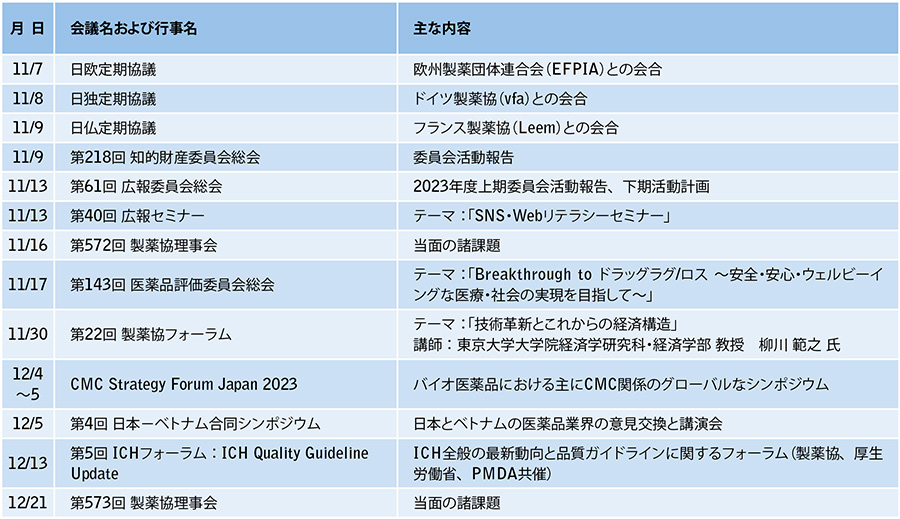 主な活動予定(2023年11月1日~12月31日)