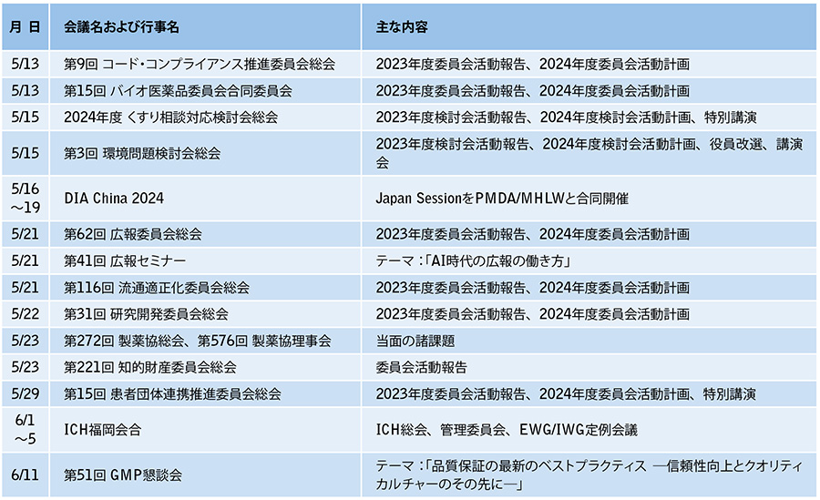 主な活動予定(2024年5月1日~6月30日)