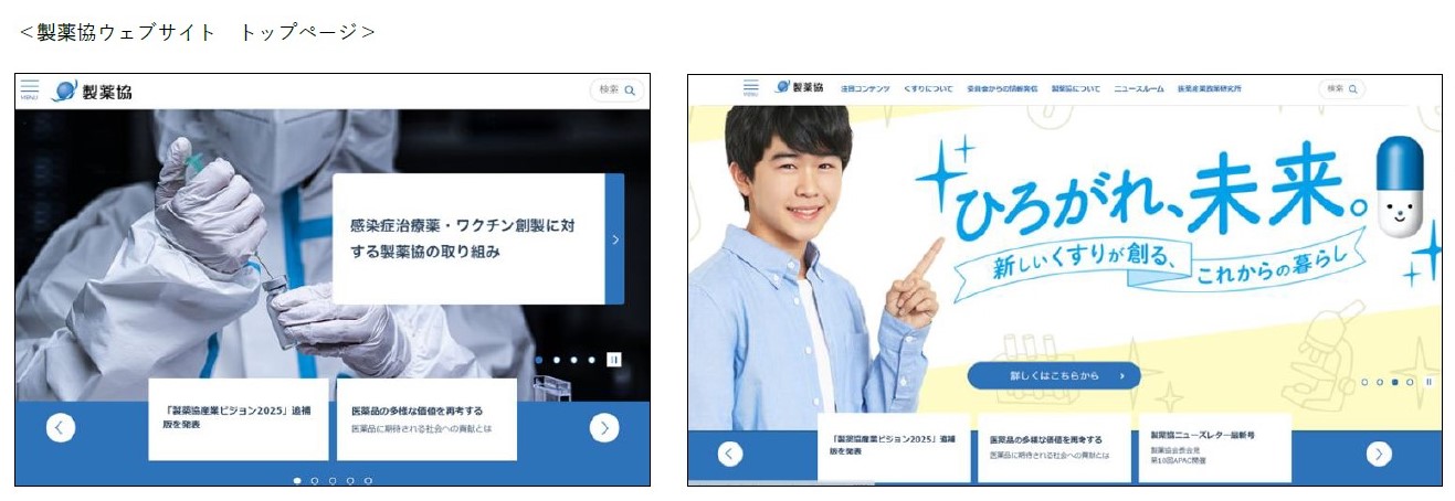製薬協ウェブサイト リニューアルのお知らせ 〜 情報発信力強化に向け、使いやすく、業界の声が届きやすいウェブサイトに 〜