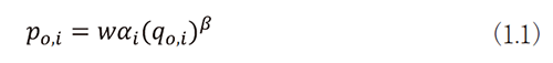 新薬iと対応する既存薬の健康上の効果は、同じ基準で測定され、それぞれqiとq0,iだとする。これらは、薬を投与しない場合と比較したQALYの改善度合いと考えてもよい。既存薬の薬価は、その国の健康改善への支払い意欲wに比例し、また当該疾患特有の事情(治療に対する需要等)αi、及び当該医薬品の効果を反映して以下のように決定されるとする。