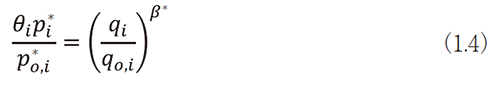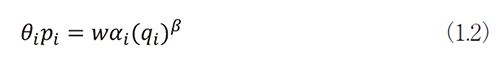 ここでβ≥0であり、もしβ=1、αi=1であれば、既存薬の薬価はその健康上の効果に等しく比例的に設定され、β=0なら価格は健康上の効果を反映しない。